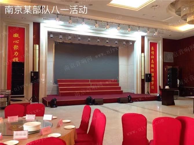 舉行活動(dòng)房間的面積并不大,只有280平方米。按照長(zhǎng)官的要求:不需要太華麗,只要有活動(dòng)的氛圍就行了,音響的音質(zhì)要好一些,畢竟是舉行活動(dòng)的,不能讓不好的音質(zhì)影響了心情。在房間的正前方,一個(gè)小型的舞臺(tái)布置的非常簡(jiǎn)單。舞臺(tái)雖小,但燈光和音響設(shè)備一樣不少,舞臺(tái)兩邊安裝了JBL的線陣音箱,燈光打開(kāi),音樂(lè)響起,歡慶的時(shí)刻到來(lái)了。
