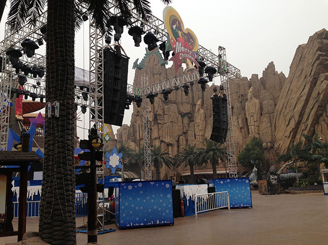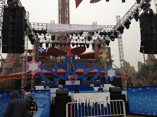 我們布置的是常州恐龍園圣誕演出活動(dòng)的舞臺(tái)布置,具有一定的挑戰(zhàn)性,眾所周知,每年的12月24號(hào)是常州