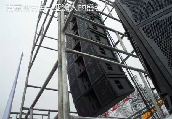 亞青會期間每天觀眾有3.4萬人,此次盛會的所有燈光音響設備都由我公司提供。由于空間面積大,參加人數(shù)眾多,所以使用的是大型演出音箱——線陣音箱。