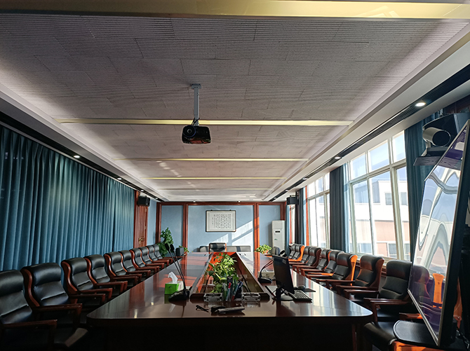 系統(tǒng),結(jié)合現(xiàn)場會議室攝像頭,實現(xiàn)聲畫完全同步,與異地會議室的完美溝通。完工后甲方對整體方案贊不絕