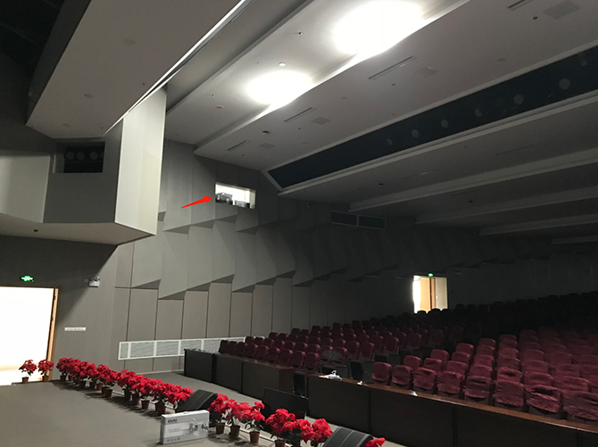 為了不影響美觀,把機(jī)房控制室安裝在了多功能廳側(cè)面的二樓,機(jī)房?jī)?nèi)設(shè)計(jì)以一個(gè)小窗,里面的人通過(guò)