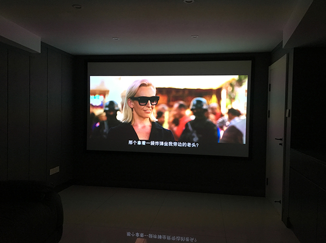 的觀影面積,提高了觀影體驗(yàn),也不影響聲音效果。該家庭影院使用了4K高流明高動(dòng)態(tài)的投影機(jī),清晰度高,