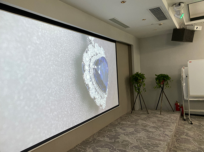 更加簡單明了,120寸的電動(dòng)升降幕布,在不使用時(shí)可以升起,保證整個(gè)包間的美觀,使用時(shí)再放下,中控主