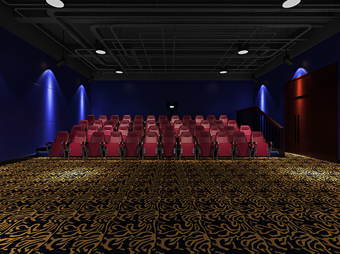 修,使用了隔音板、吸音板對(duì)墻面進(jìn)行的聲學(xué)處理,地面使用標(biāo)準(zhǔn)的電影院專(zhuān)用地毯,保證了舒適度的同時(shí)也