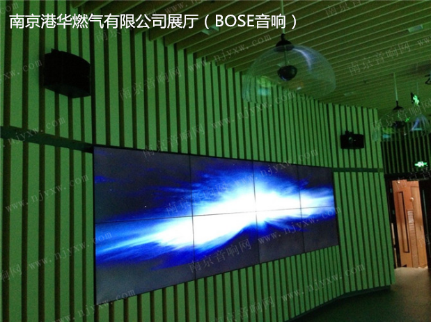 配置了四只音箱和一只低音炮,為了展廳內(nèi)的整體美觀和觀看視頻的聲音效果(音箱