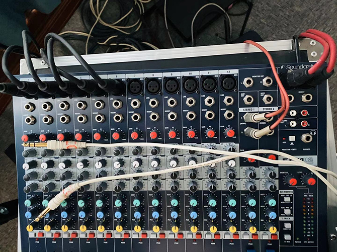有的基本會議系統(tǒng)上增加了遠程會議系統(tǒng),通過使用soundcraft的12路調(diào)音臺,話筒信號直接傳輸?shù)竭h程會議