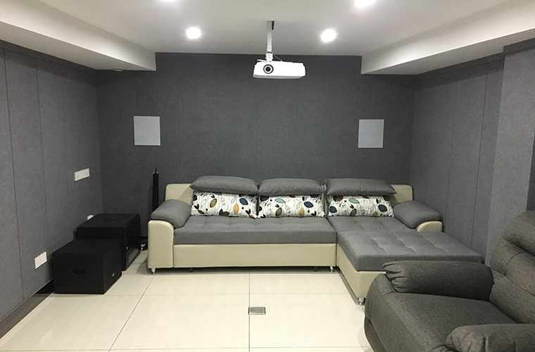 根據(jù)業(yè)主的需求,我們?cè)趬ι线M(jìn)行了內(nèi)嵌,同時(shí)在房間四面墻上做了吸聲處理,隨后定制了JBL的影院