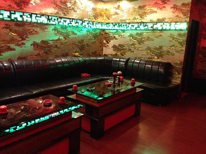 每個包廂都安裝了KTV場所專用的蝴蝶燈,水晶魔球和激光燈。燈紅酒綠的色彩搭配,烘托了歌曲以及